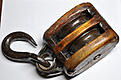 Very creative way to build these blocks. They are always very fiddly and I hope yours work out. Just as a model here is one of my naval blocks. This is of course a double block whereas most that you need are singles. Also the strapping around this block is metal whereas the more common method was to strap them with rope and instead of a hook at the top they would have a loop of rope called a bight.