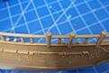The deck has been painted Revell 88 which is similar to the plastic and the inner sides of the hull are Humbrol Acrylic 186. The next stage is to paint the hull, using the Humbrol 186, with Humbrol 70 below the waterline. Detailing will be blue and anthracite.