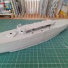 Fitted the deck, added filler on the bow, going to leave the seam under the hull no one will see it. Added prop shafts but not the rudder