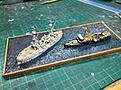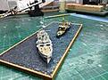 final detailing done, both ships mounted, just a coat of sealer, the rigging on Fuso and some work on the sea base.Click image for larger version