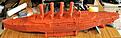 Buff superstructure, wood decks, white upper hull over a dark red lower hull, separated by a thin black boot-topping.