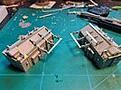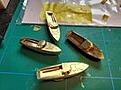 The boss was working this AM. so I sloped of to my office. had a bash at the first four boats... The first one has all the PE added. the three others just the main bits that can be seen. All the bits I will never see again and some parts not even big enough to notice got left off.
