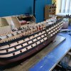 Sorry Brian, you’ll hate me for this…..but after looking at it in conjunction with Pete photo, shouldn’t your restraining lines on the gun cascabels have slack in them? As modelled the crew wouldn’t be able to get the guns back inboard to reload the cannon or close the ports.