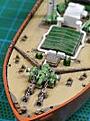 Hi all, progress has slowed a bit due to an interruption called being back at work but i have now got the 22 parts together to make the bridge,still more to go! The rear deck is now fitted and the front one has had most of its bits glued on too ,including the anchor chains. Made a start at painting the plane,great fun masking at 1/350 scale.