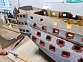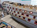 Gun port linings done both sides done, having a read through the destructions and from what I can gather mast holes to be opened up to align the masts correctly then 3 whales either side next.