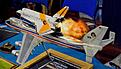 It does not show up in the photo, but there was a tiny bulb lighting up the underside of the missile as it rises upwards, looked very realistic, disappointed that it did not show up here!