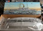 HMS Agamemnon was with her sister ship Lord Nelson, the last of the pre-dreadnoughts built for the Royal Navy, They were both completed after HMS Dreadnought - this was due to the 12" turrets for them being diverted to the Dreadnought, so they were obsolete before commissioning. They were expensive ships ( more than the Dreadnought ), with their mixed armament, and needed larger crews. They weren't considered fit to join the Grand Fleet & found useful employment at the Gallipoli peninsula. The Agamemnon was converted to a target ship in 1923, but was scrapped in 1927.