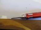 I did a couple of lines on this old B-25 that i dropped and broke a few months ago. The line on the left and at the top are the ones that are too deep. The one on the right is the one where i took off thin layers.