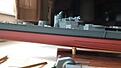 I have been using colour coats and it seems to spray well using humbrol thinners, i did try it with white spirit but i thought it had a bit of a sheen to it, the other thing i got wrong apparently was the under water anti foul colour it now appears according to the Hood site that she never had red antifoul it was either grey of an undefined shade or black. so i am at the moment trying to re do it grey. here are afew shots of the first finish using colour coats narn 20 and red anti foul.Click image for larger version
