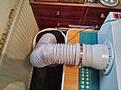 During this time I assembled the bucket/water trap. A hole 10.5 cm diameter was cut into the lid, with 8 half inch holes drilled around the top to allow air to escape, and once cleaned up the extraction hose was stretched out about 12 inches and fed through the hole. Once satisfied with the length inside the bucket (8in) I used mastic sealant on both sides of the hole to seal in the pipe and allowed it to dry for 48 hours once smoothed and cleaned up.