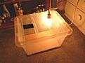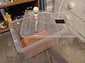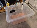 I tend to use a large plastic storage box or shoe box. Read somewhere that the box should have a grill of sorts to let the fumes out?? Getting the occasional bit of dust!