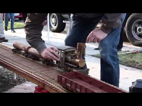 An unpainted version of Marcus cliimbs aboard Henners scratch built live steamer Betsy.