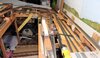 You can see continuous run on far right holding to grade std. & the layout of yard & run-around connector before elevating it. In midframe is a pile of lumber to go to the chopsaw for elevating the yard/run-around connector.
