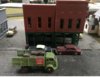 Here’s a few pics of my 1/87 HO Layout that I still run today. The Green Autocar U truck was custom built by me as well as the Ford c600 Union Ice truck and building and lots of Piggyback trailers. The white two story house is a funeral home and the black car beside it is a custom built 50s Plymouth Hearse. The coal conveyor and the coal tower and city buildings were all built by me. I did all the landscaping, road building and ballasting the track also. I have my layout built where I can switch to just about any era from the 1940s up to modern day these pics are around the early 60s