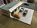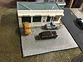Yesterday I made a driveway for the Fire House and move the Gas Station made a mock up to see how it looks and added a parking lot for it also. I need to weather them both a little more. Click image for larger version