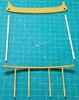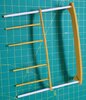 Attention is then turned to the rear of the cable car. The top piece of the rear end is at the top of the picture, the middle piece has had the rod strips installed. Through the larger side holes will be two poles that make up the structure.