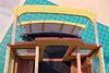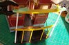 The completed section is installed into the rear of the base. Care is taken to ensure the whole structure remains level, and that there is no sinking of poles lower than the base holes. To help prevent this, and potential problems after drying, I quickly glued the top horizontal beams in place and held there until dry with clamps. Much success was had
