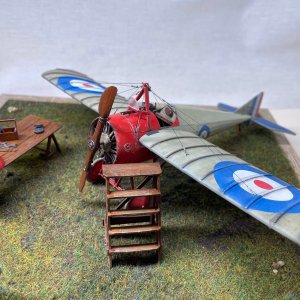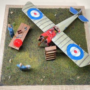 I did build this one in 2022. Figurines are from Blackdog. I created and printed the 3D models of the table, ladder and some details on the plane such as the logo, machine gun and turnbuckles.